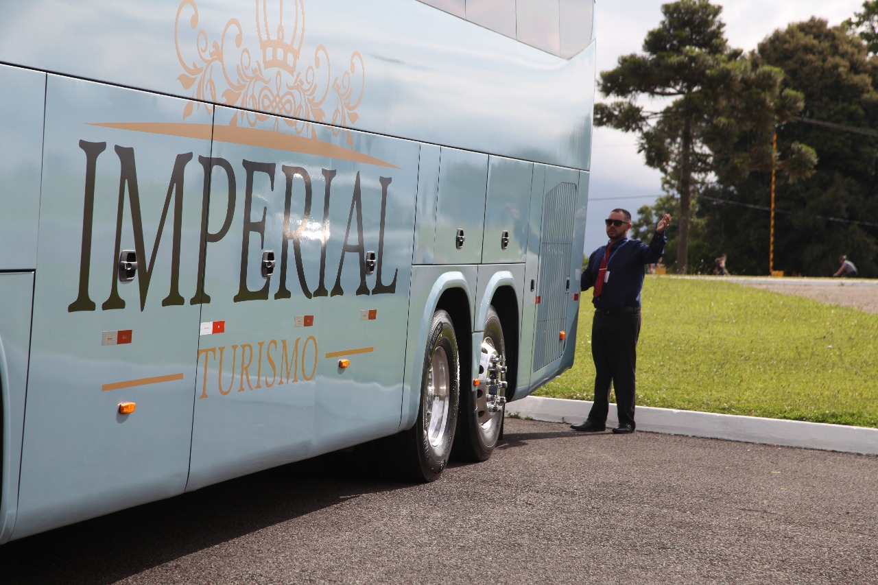 Imperial em Nova Bassano transportando os estudantes da Universidade de Caxias do Sul.